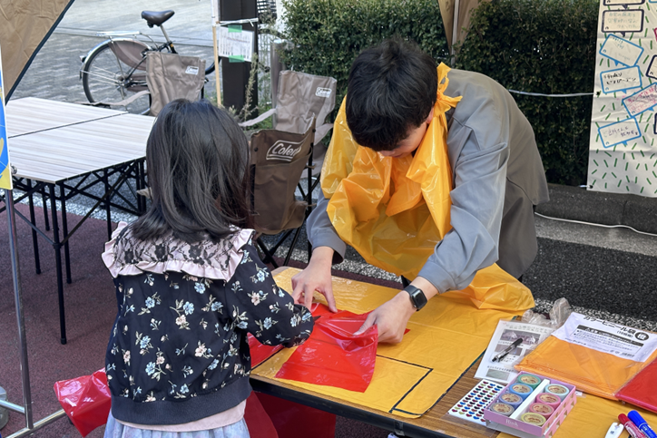 当日は秋晴れのもと、地域のにぎわいを感じる一日となりました。私たちのブースでは、子どもから大人まで楽しめる「防災ポンチョ作り体験」を実施し、参加者には、防災を身近に感じてもらうきっかけとなりました。