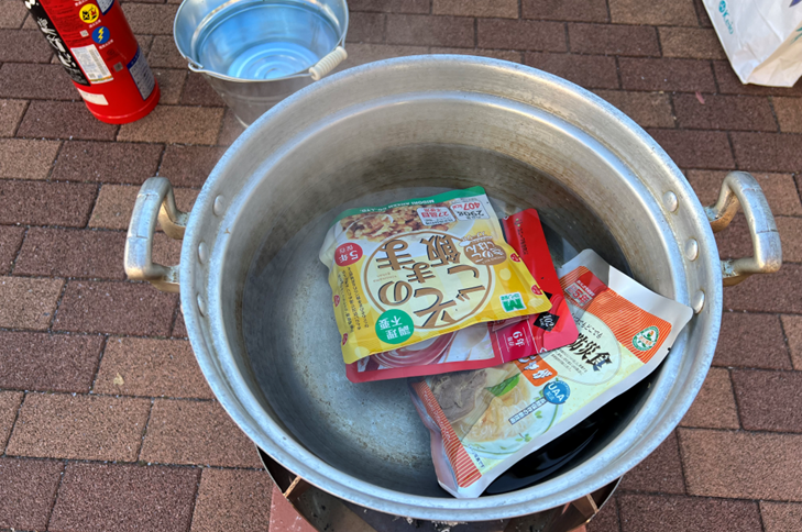 本町ひがし公園では、渋谷区のプレイスメイキングによるかまどベンチを使った火おこしや防災備蓄食料の試食体験が実施され、子どもたちが火おこしに挑戦する様子や、家族で非常食を試す場面が見られ、防災を楽しく学べる機会となりました。